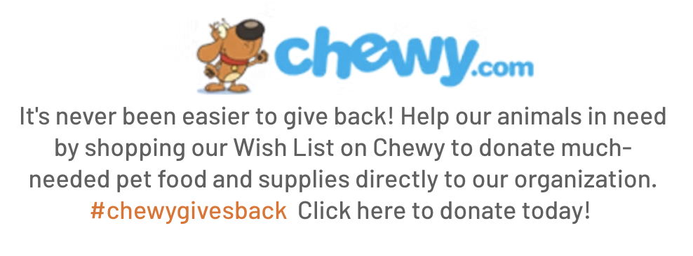 Looking for another way to help? Our Chewy Wishlist features essential items our animals use every day, including food, treats, and enrichment supplies.